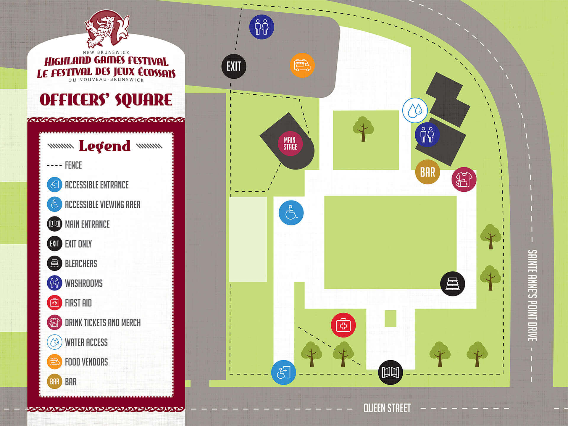 The New Brunswick Highland Games Festival is located on the beautiful grounds of historic Government House, residence of New Brunswick’s Lieutenant Governor, the Honourable Louise Imbeault. Her Honour is also the Patron of the Highland Games Festival.